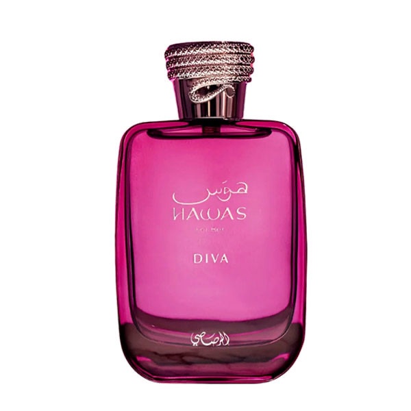 Hawas Diva by Rasasi is a Oriental Floral fragrance for women. This is a new fragrance. Hawas Diva was launched in 2025. Top notes are Red Fruits, Lychee and Rhubarb; middle notes are Rose, Frankincense and Cedar; base notes are Vanilla, Ambergris and Musk.